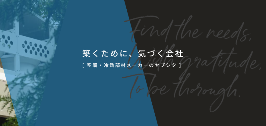 ヤブシタグループは、空調・冷熱部材の設計・製造・販売を主軸とし、建築設計、電気工事、再エネなど16社が連携する総合ソリューション企業です。20年以上の実績とISO9001取得工場を背景に、解析技術も駆使した高品質製品をワンストップで提供。独自の「氣づき・感謝・丁寧」を理念に、人間力×技術で顧客価値を創造します。