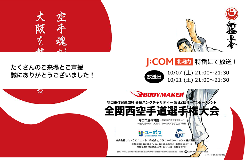「第32回 オープントーナメント 全関西空手道選手権大会」は皆様の多大なご協力により無事終了することが出来ました。大会当日には多数のご来場とご声援を頂けました事、感無量です。